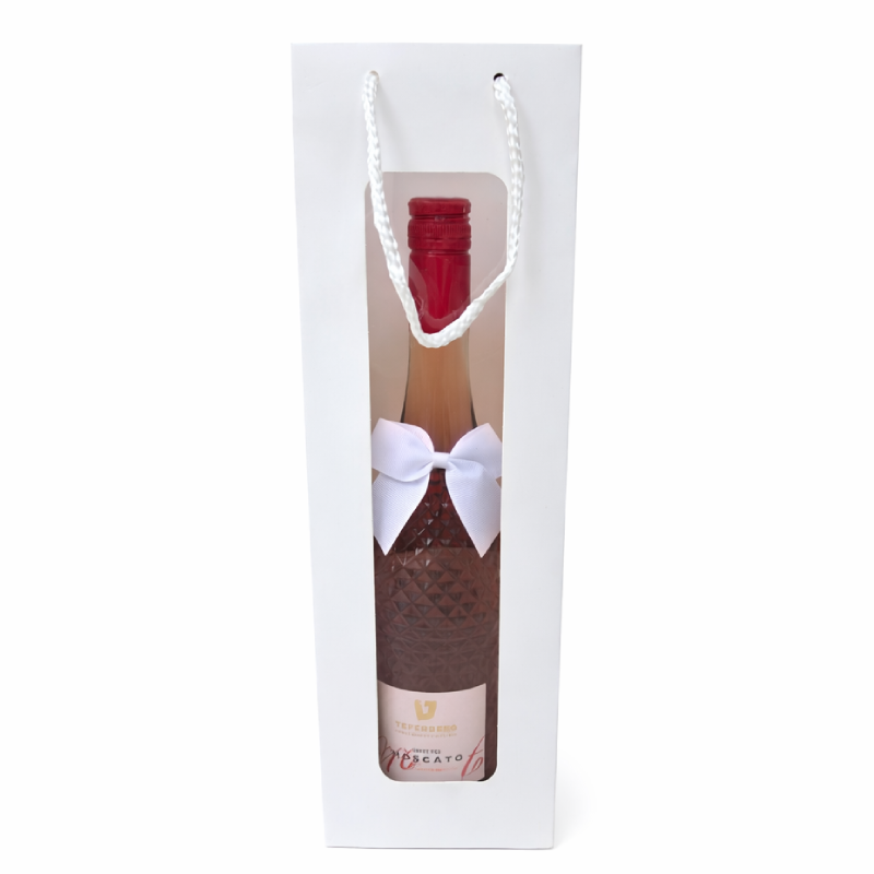 היין מגיע עם פפיון ושקית עם חלון שקוף